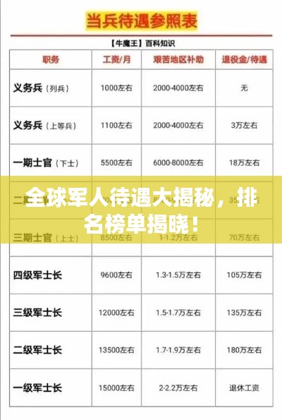 在國家的繁榮與安定的背后,有一群特殊的群體默默奉獻(xiàn)——他們就是軍人,為了國家的安寧,他們不惜付出青春和熱血,理應(yīng)受到全社會(huì)的尊重和關(guān)懷,近年來,隨著國家對(duì)軍人福利政策的不斷調(diào)整和優(yōu)化,軍人的待遇也在不斷提升,本文將為您詳細(xì)介紹軍人最新的待遇,讓您了解國家對(duì)于軍人的關(guān)懷與優(yōu)待。