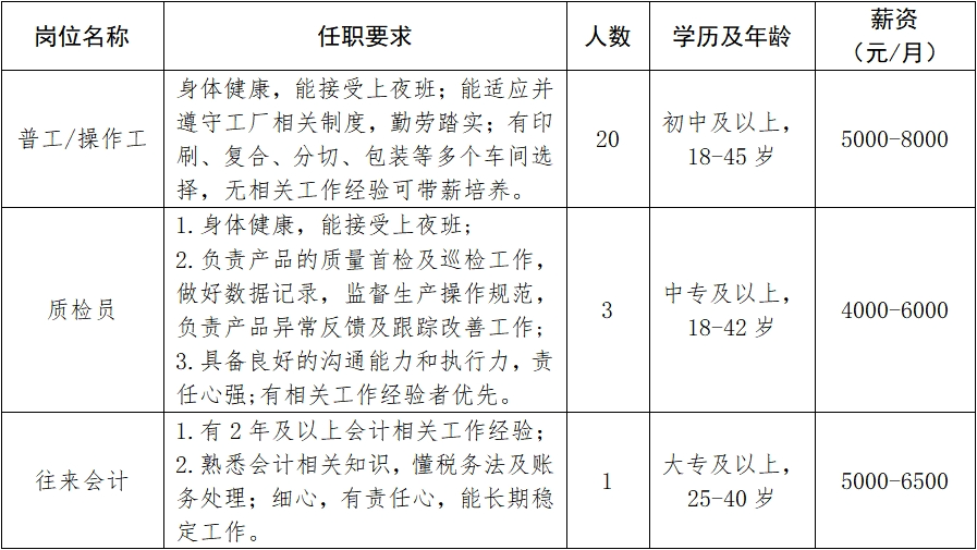 2、豐厚的待遇:我們?yōu)閱T工提供具有競(jìng)爭(zhēng)力的薪資待遇和完善的福利,以及良好的發(fā)展空間。
