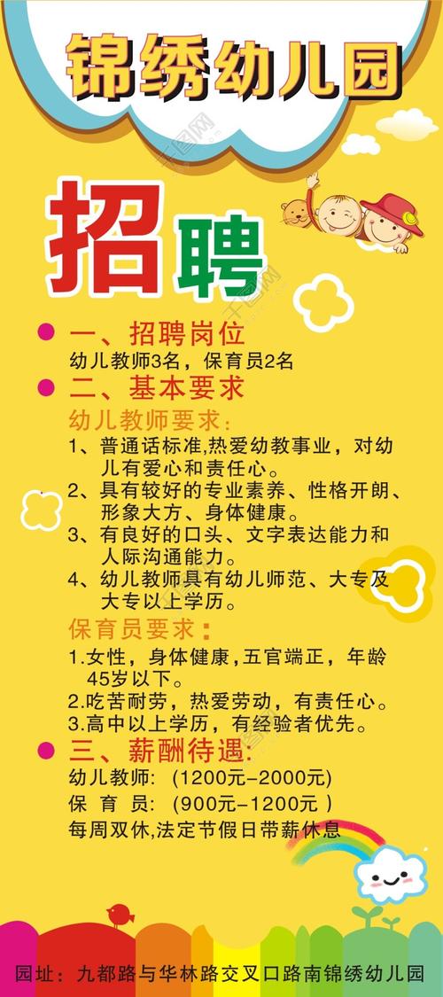 招聘幼兒園教職員工的公告,誠邀有志之士加入我們的團隊。我們尋求有責(zé)任心、熱愛幼兒教育事業(yè)的人才,共同為孩子們的成長提供一個充滿愛與關(guān)懷的環(huán)境。具體職位信息包括教師、保育員等,詳情請聯(lián)系幼兒園負責(zé)人。我們期待你的加入,共同致力于幼兒教育事業(yè)的發(fā)展。幼兒園招聘信息發(fā)布,誠邀熱愛幼兒教育事業(yè)的人才加入,擔(dān)任教師、保育員等職位,共同為孩子們的成長貢獻力量。