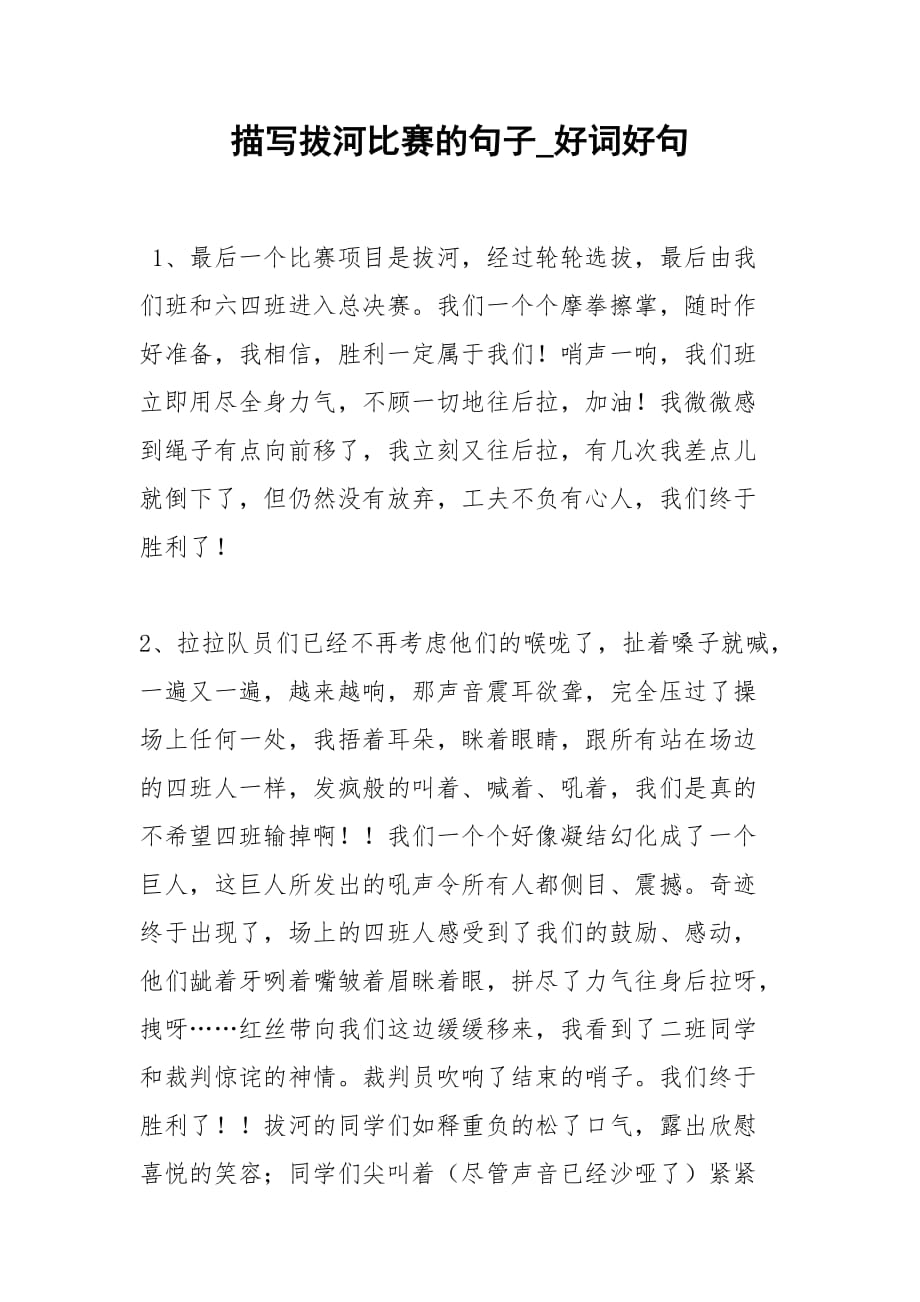 溫馨拔河比賽,友情與陪伴的力量,作文中的精彩詞句分享