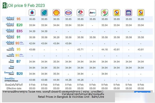 泰國油價最新概況