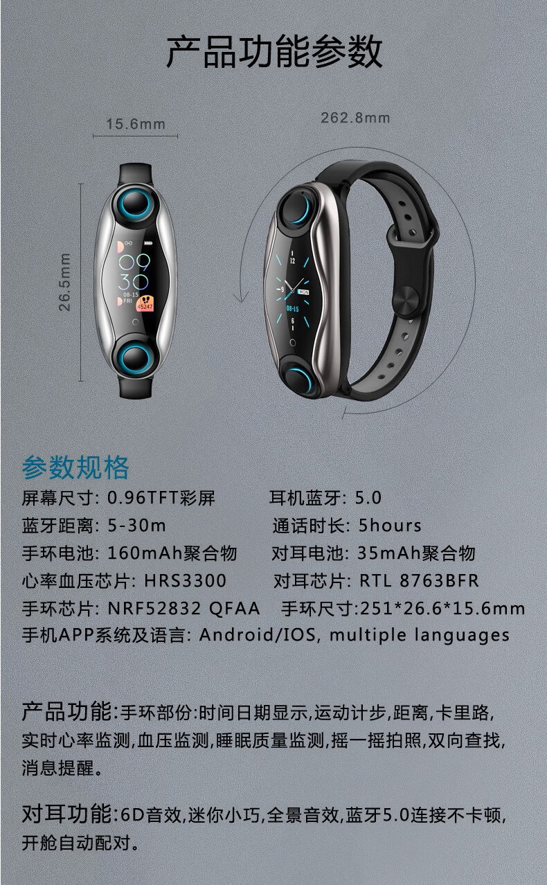 2、設(shè)計與材質(zhì)創(chuàng)新:最新藍牙手環(huán)在設(shè)計和材質(zhì)上均有所創(chuàng)新,設(shè)計簡約時尚,可以與不同的服飾和場合相搭配,材質(zhì)上采用更為環(huán)保和耐用的材料,使得手環(huán)更加耐用,同時也符合現(xiàn)代消費者的審美需求。