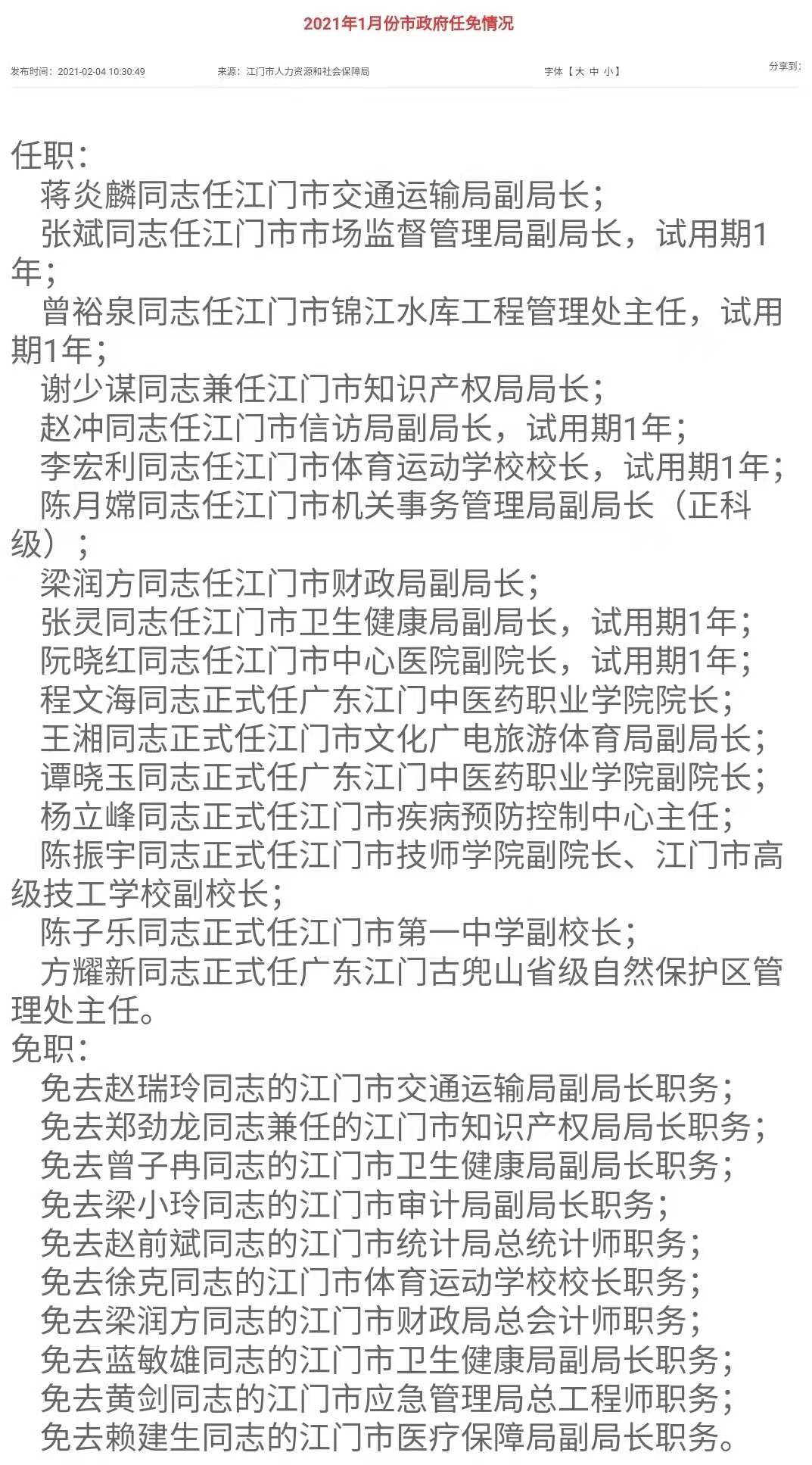 查找江門人事任免最新公示信息