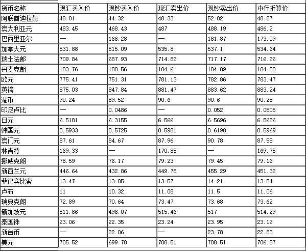 三、今日外匯最新牌價表詳解
